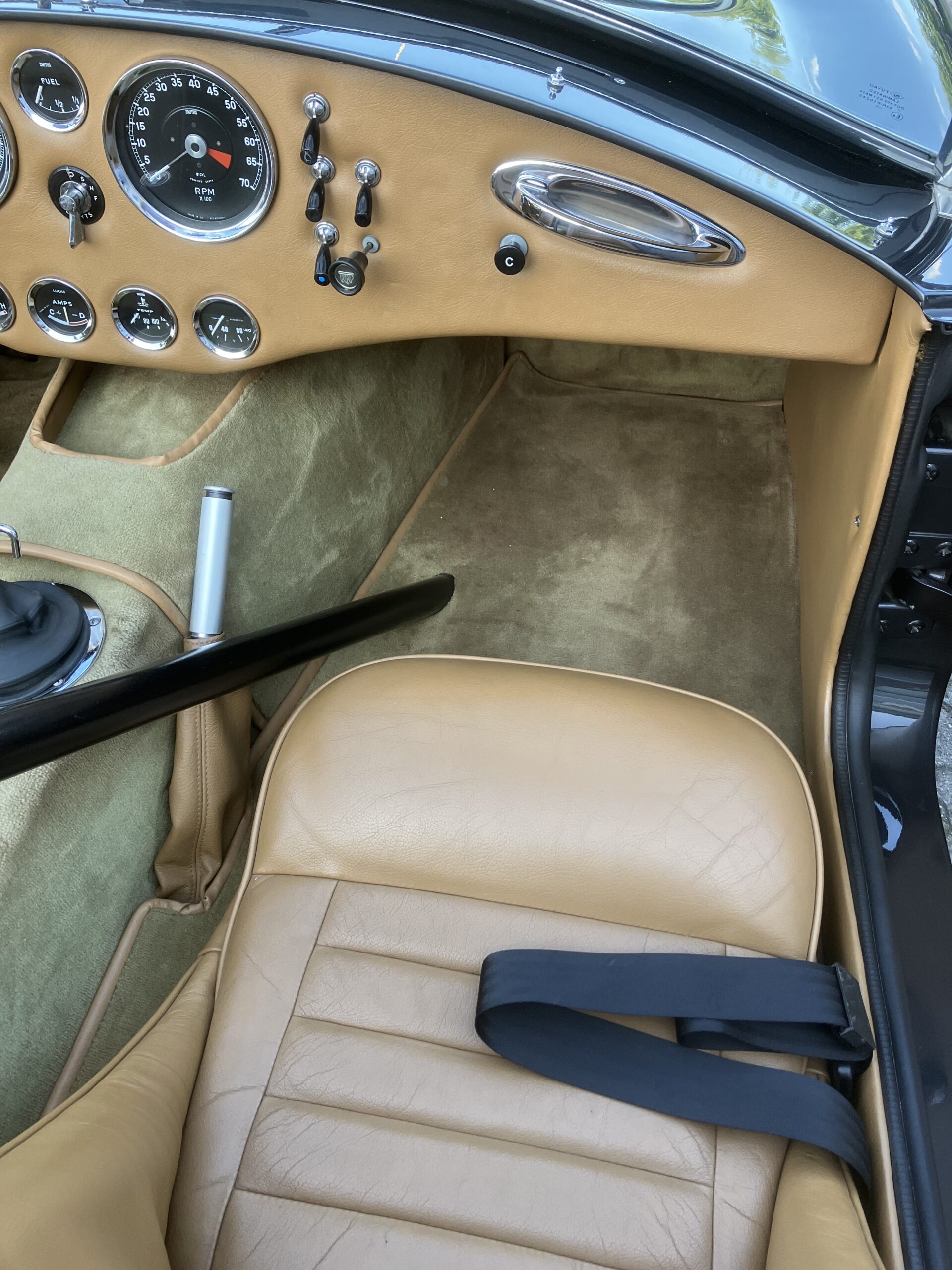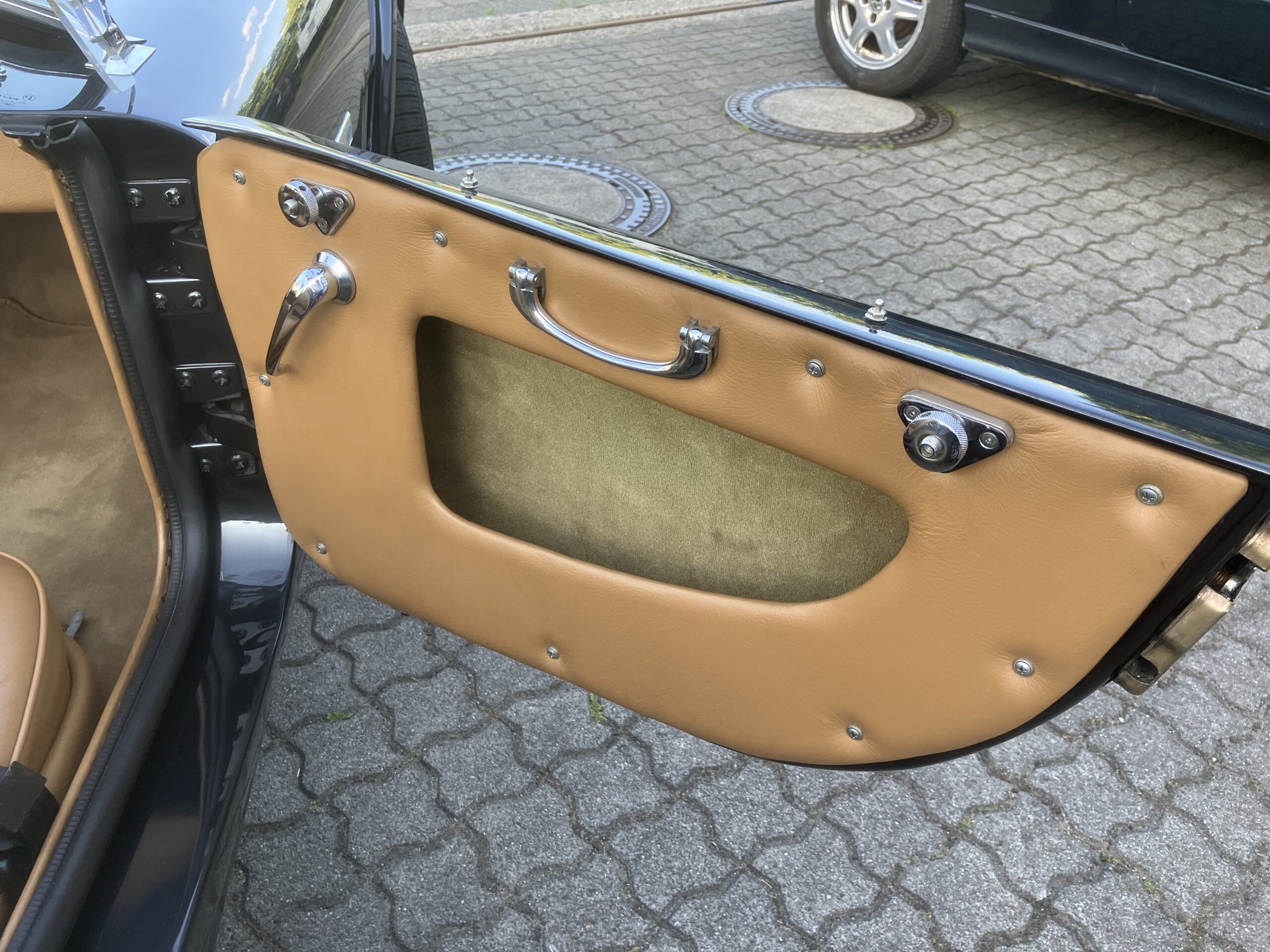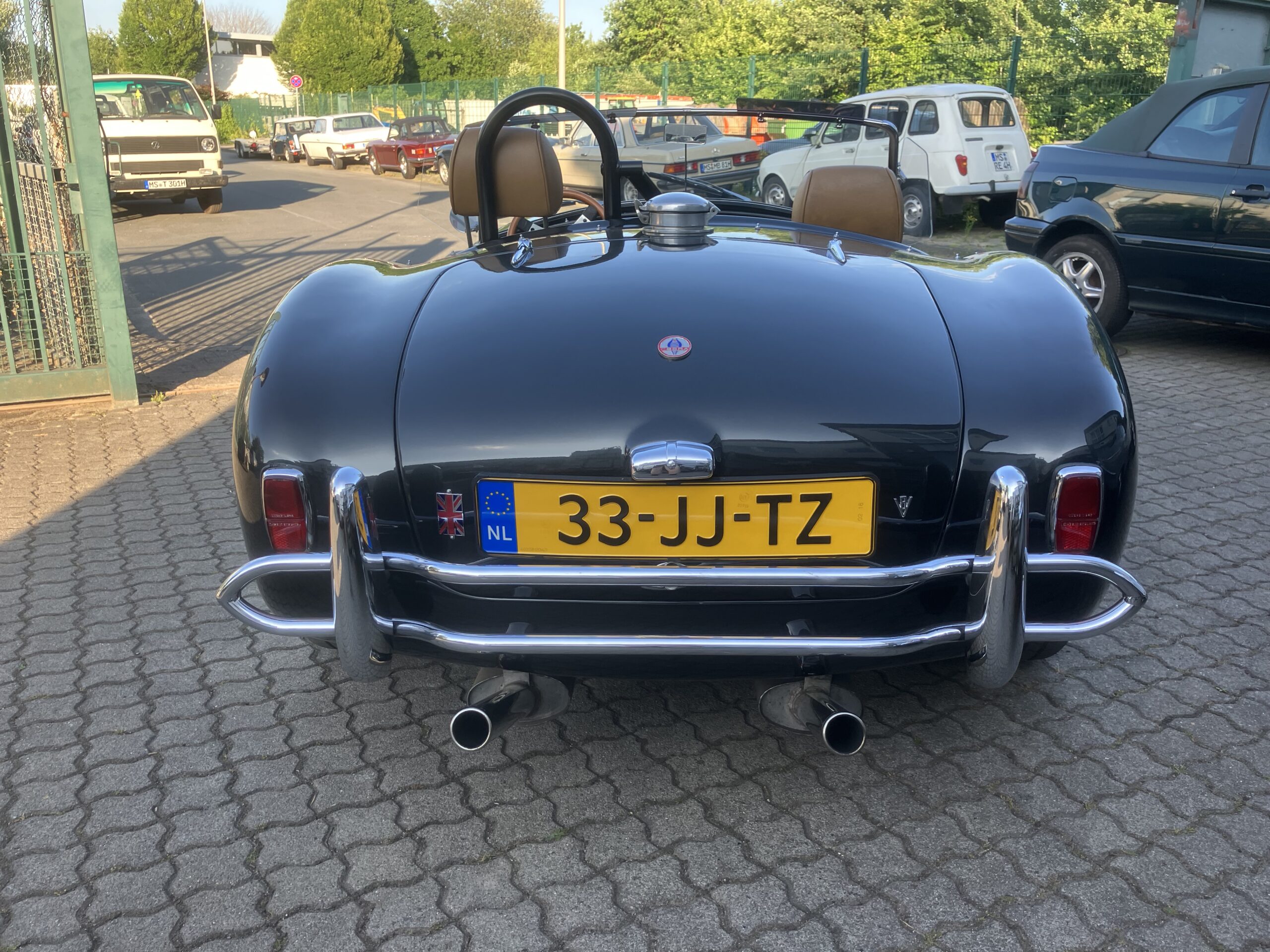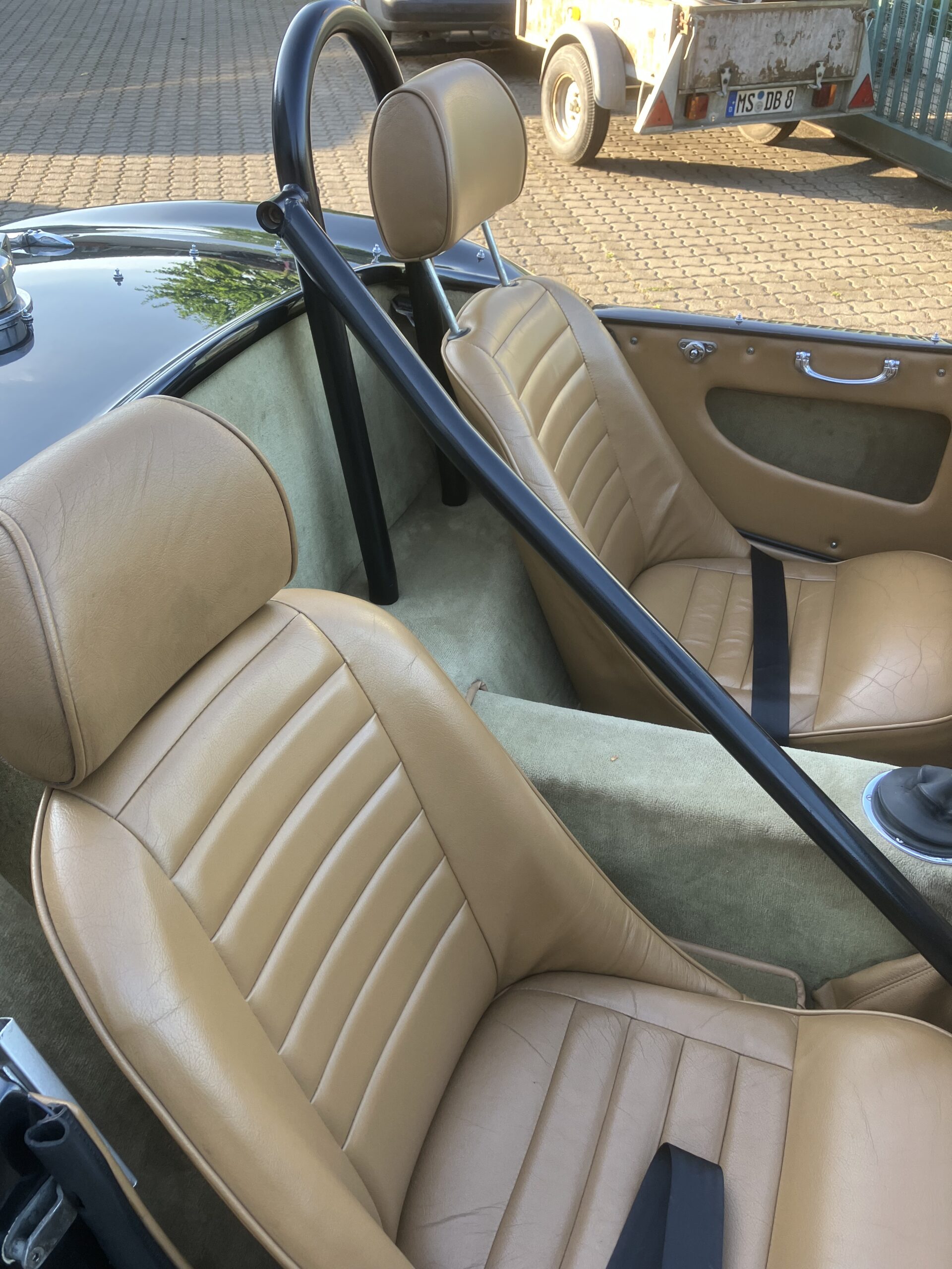 Dezente BRA Cobra Replika mit TÜV und H-Kennzeichen. Keine Side-Pipes, keine 500 PS, keine Jaguar Einzelradaufhängung, keine 50er Serie Breitreifen. Stattdessen eine linksgelenkte BRA Schmalcobra 289 FIA mit vollkommen ausreichendem 3,5 Liter Rover V 8, einem Ford 5-Gang-Getriebe und einer dem Original entsprechenden Starrachse hinten. Sehr gute Karosserie und Lackierung, schönes Interieur mit Schalensitzen und Kopfstützen. Das Fahrzeug ist 1982 gebaut worden mit den technischen Komponenten eines MGB GT V 8 bzw Morgan Plus 8 und korrekt zugelassen als BRA Cobra. Habe schon einige BRA-Cobras gehabt und schätze diese Fahrzeuge ein als sehr nahe am Original gestylt und von solider Qualität, was GFK-Karosserie und Stabilität angeht. Bringen Sie gutes Wetter zur Probefahrt mit!
